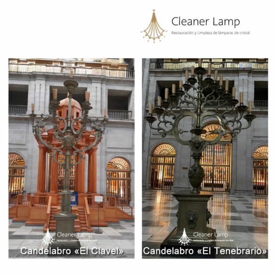 Restauración de dos candelabros monumentales de bronce. Basílica del Real Monasterio de San Lorenzo de El Escorial