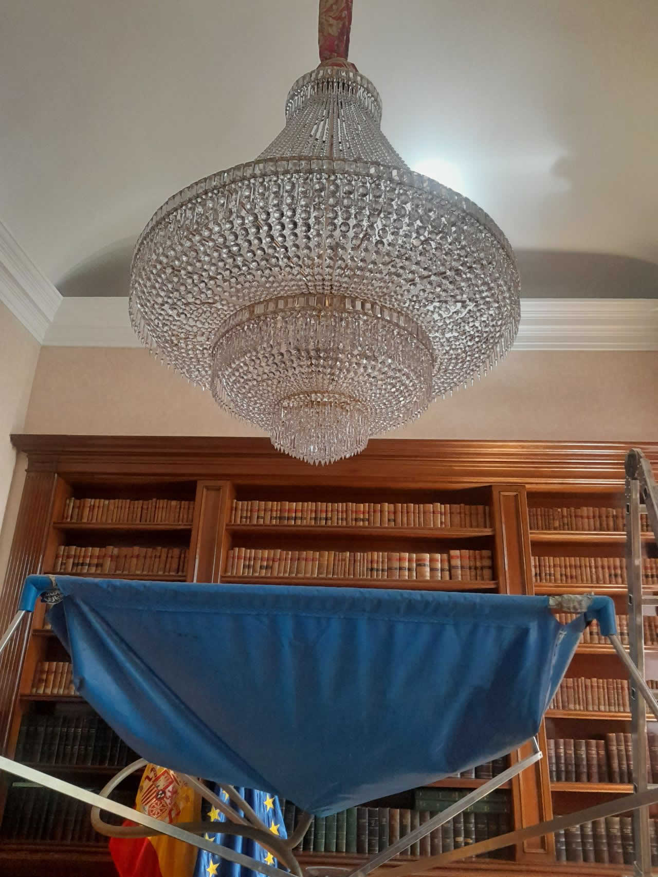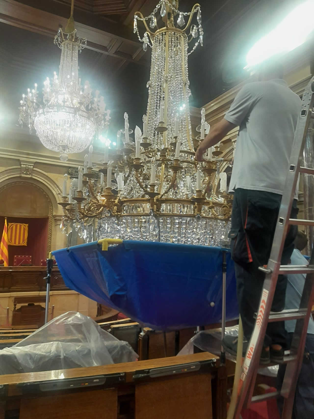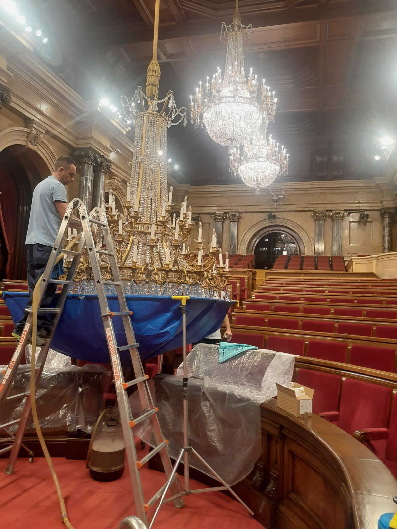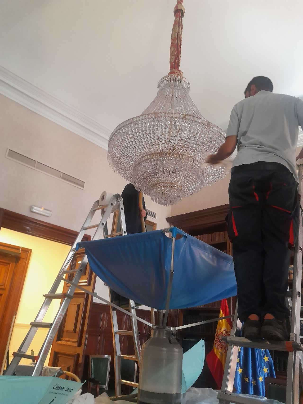 Durante los meses de verano, cuando la actividad oficial se ralentiza, muchos organismos públicos aprovechan para realizar tareas de mantenimiento y conservación de sus lámparas ya que los despachos se quedan vacíos y es el momento perfecto para poder limpiar todas las lámparas de la suciedad acumulada durante todo el año.