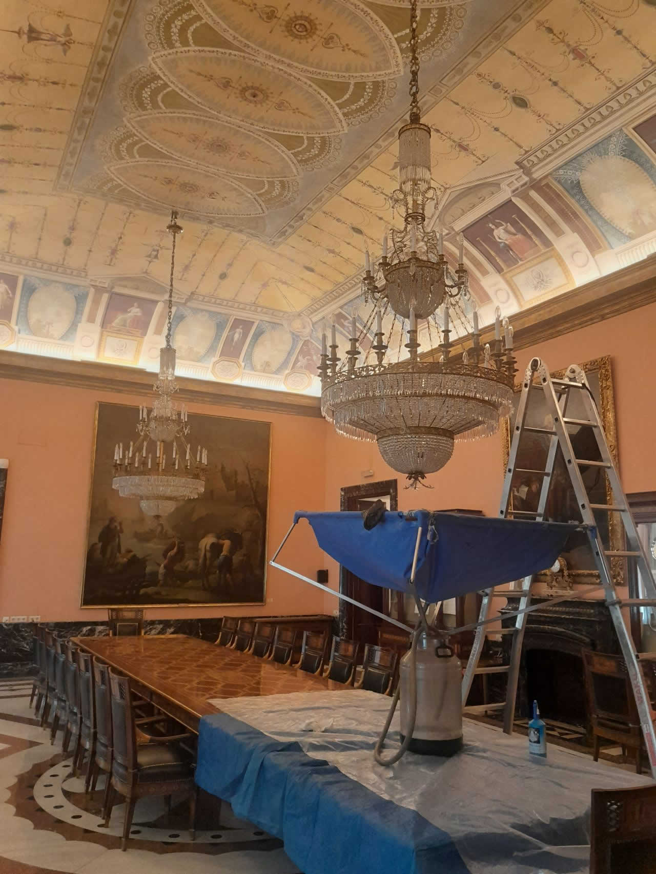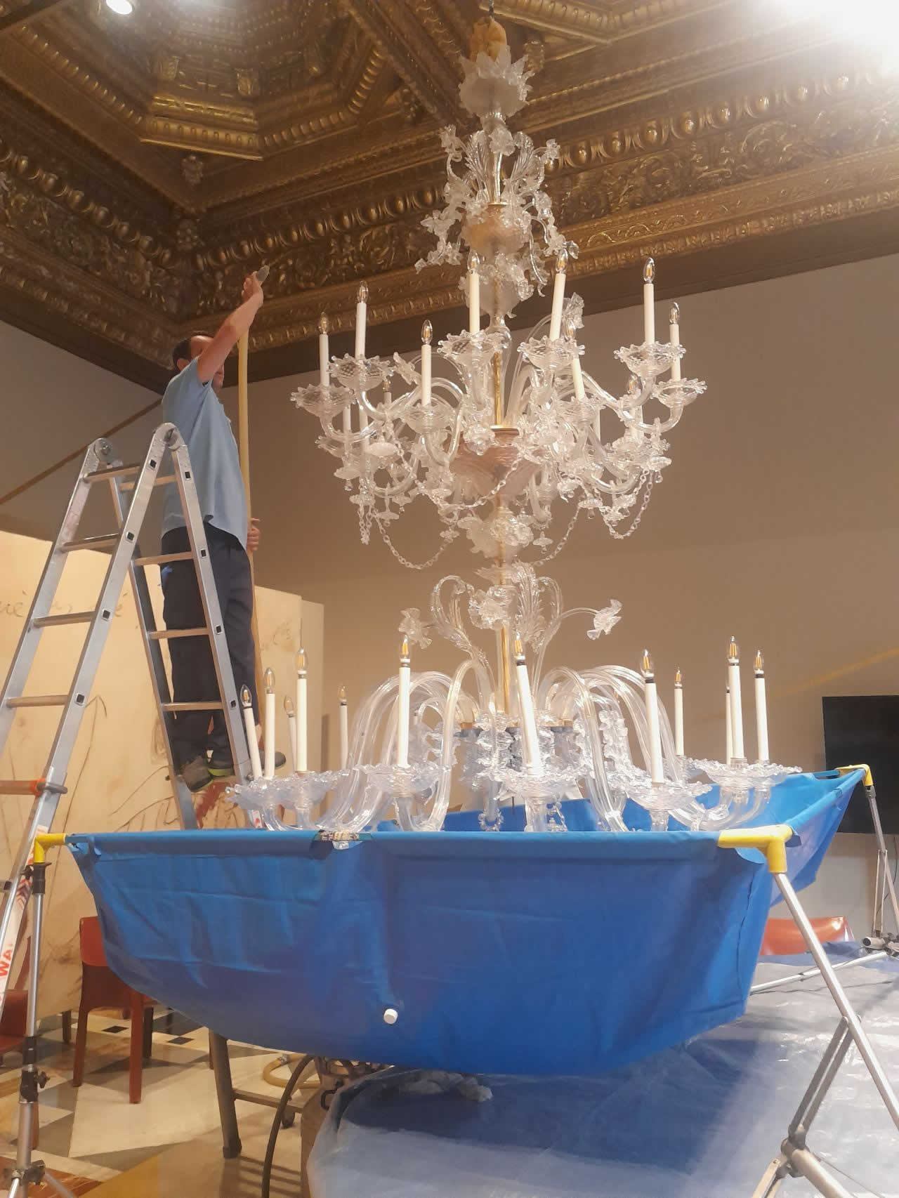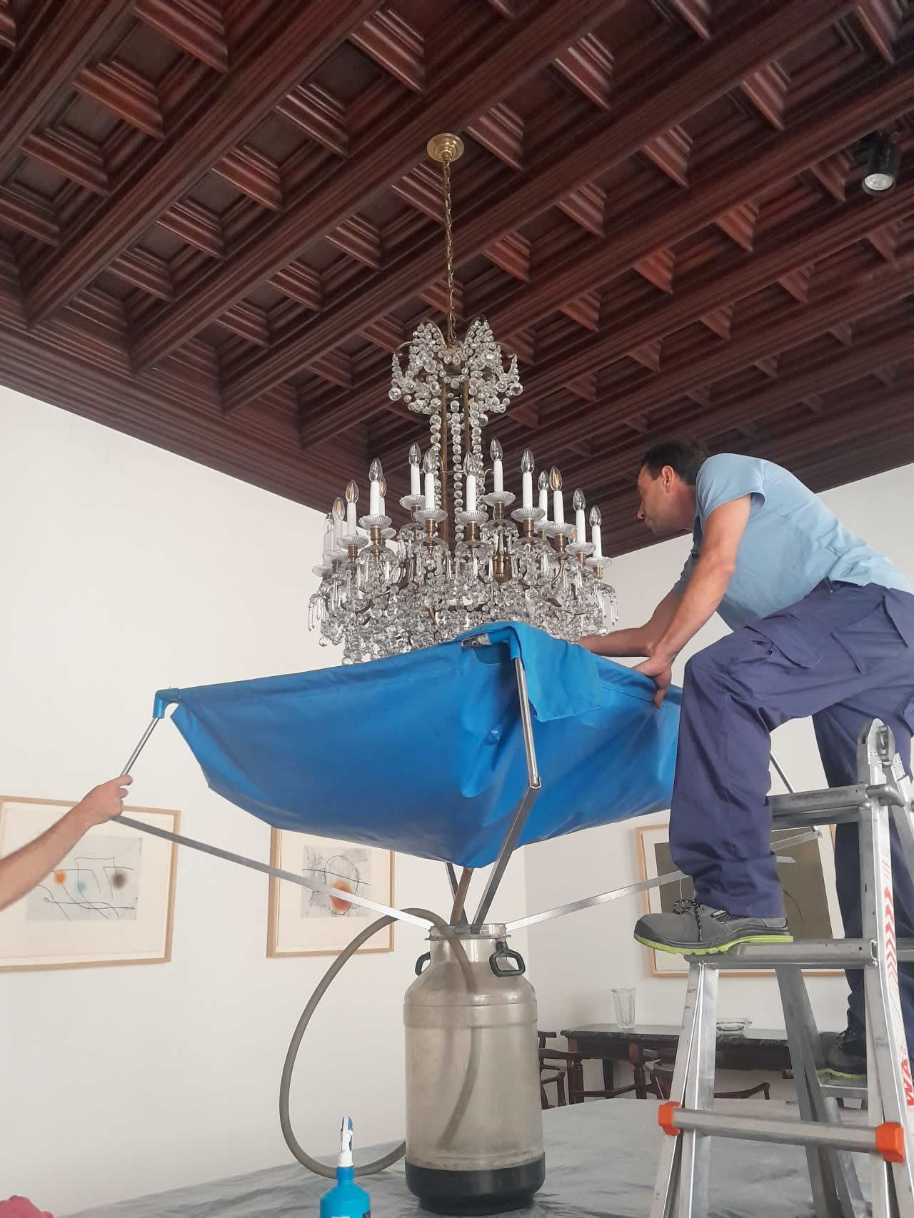 Durante los meses de verano, cuando la actividad oficial se ralentiza, muchos organismos públicos aprovechan para realizar tareas de mantenimiento y conservación de sus lámparas ya que los despachos se quedan vacíos y es el momento perfecto para poder limpiar todas las lámparas de la suciedad acumulada durante todo el año.