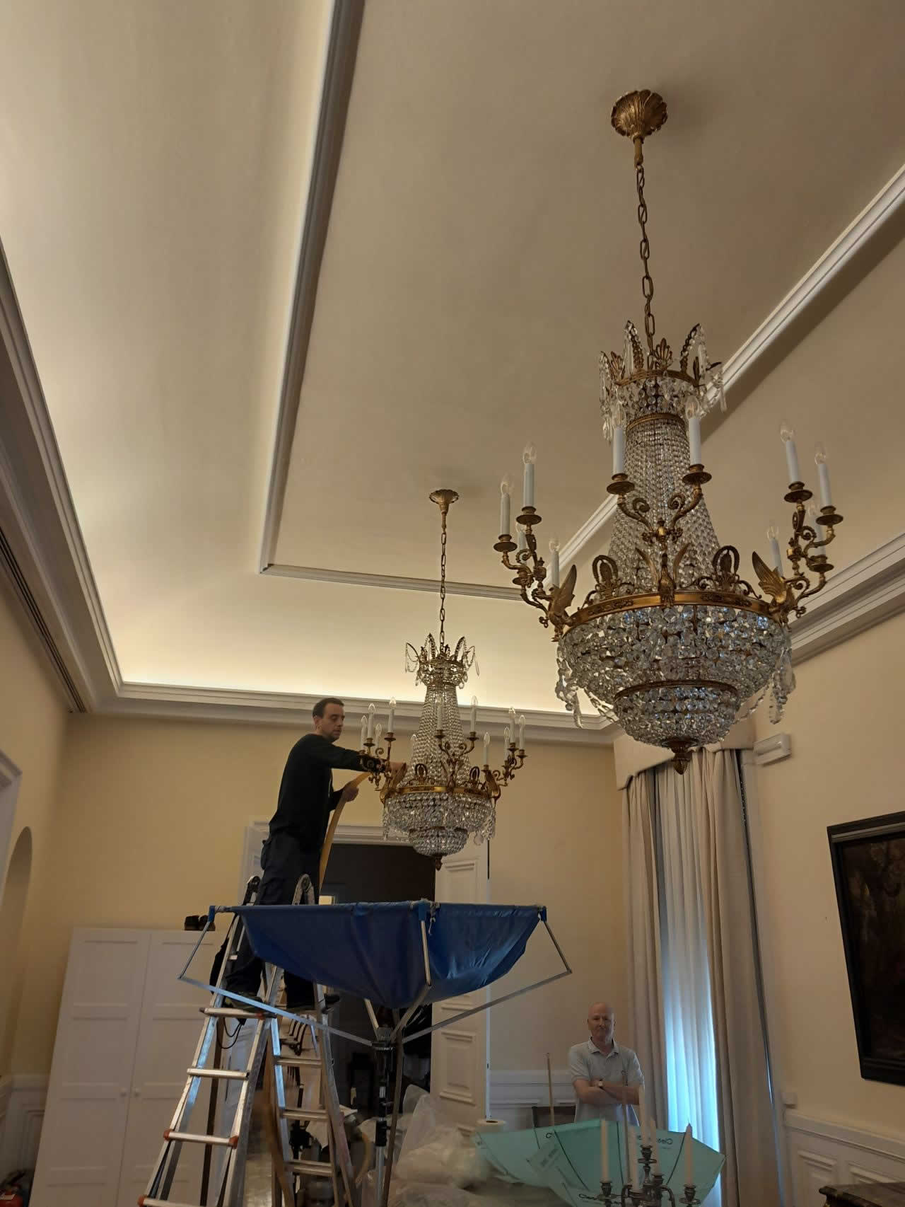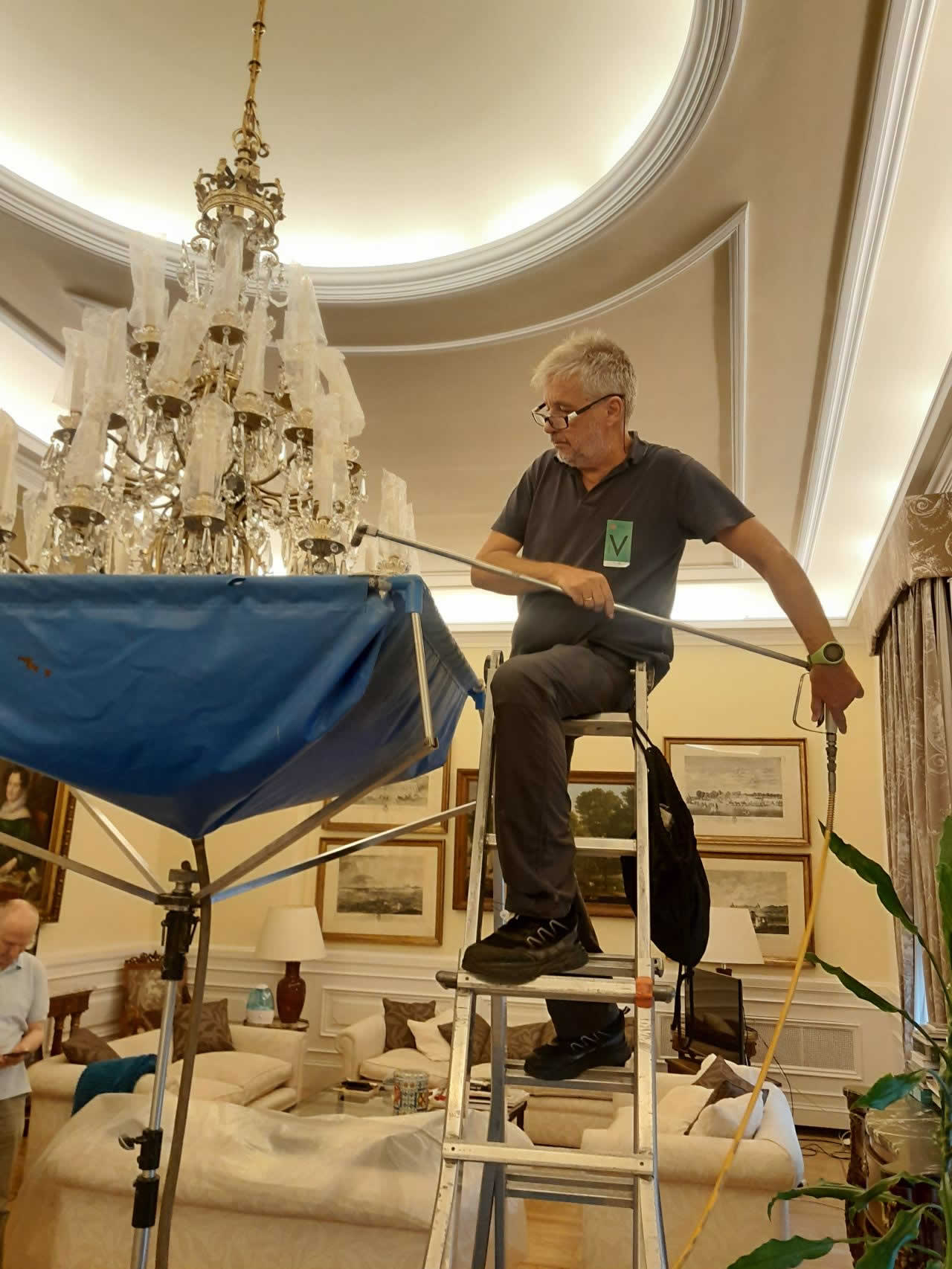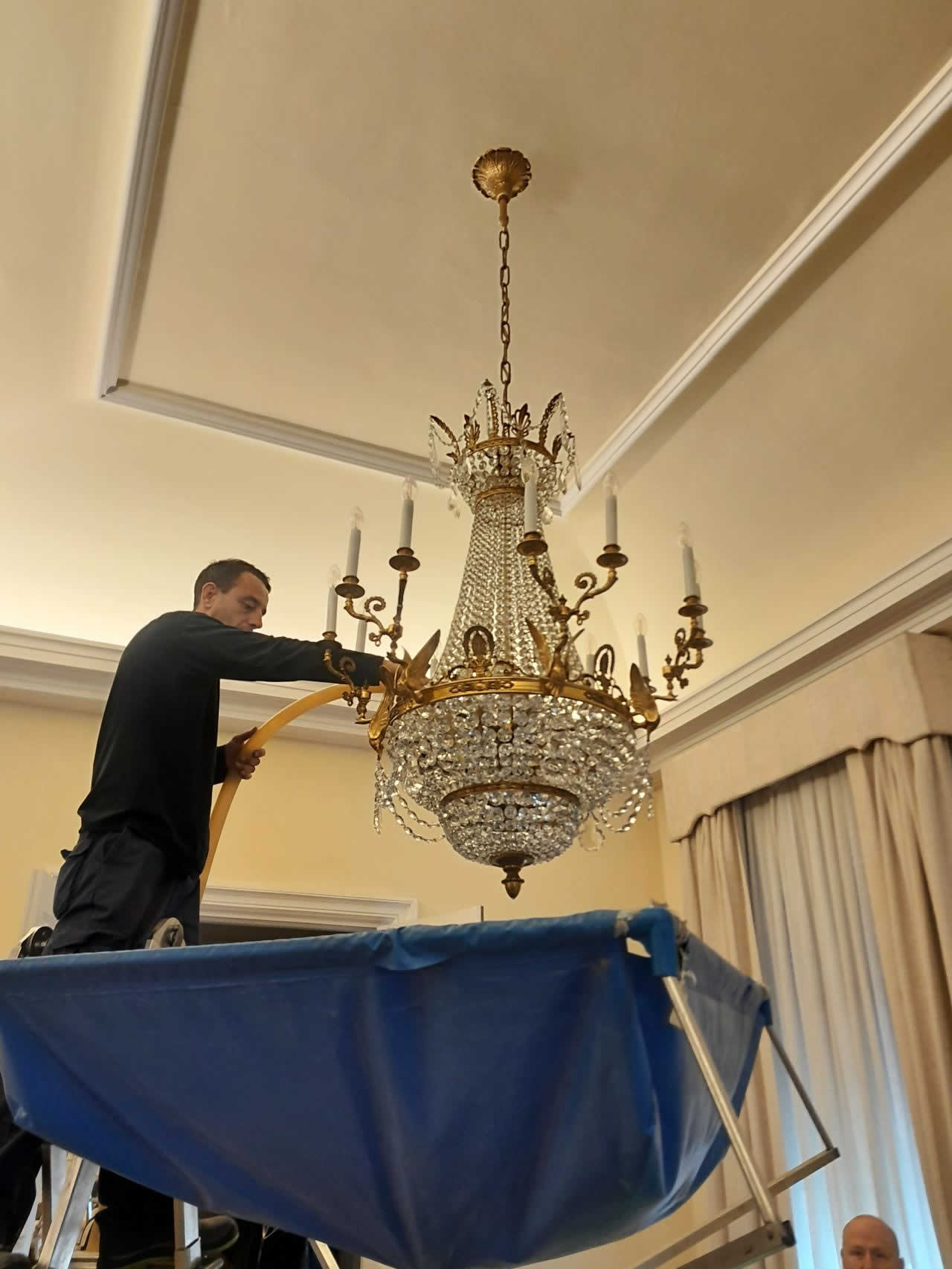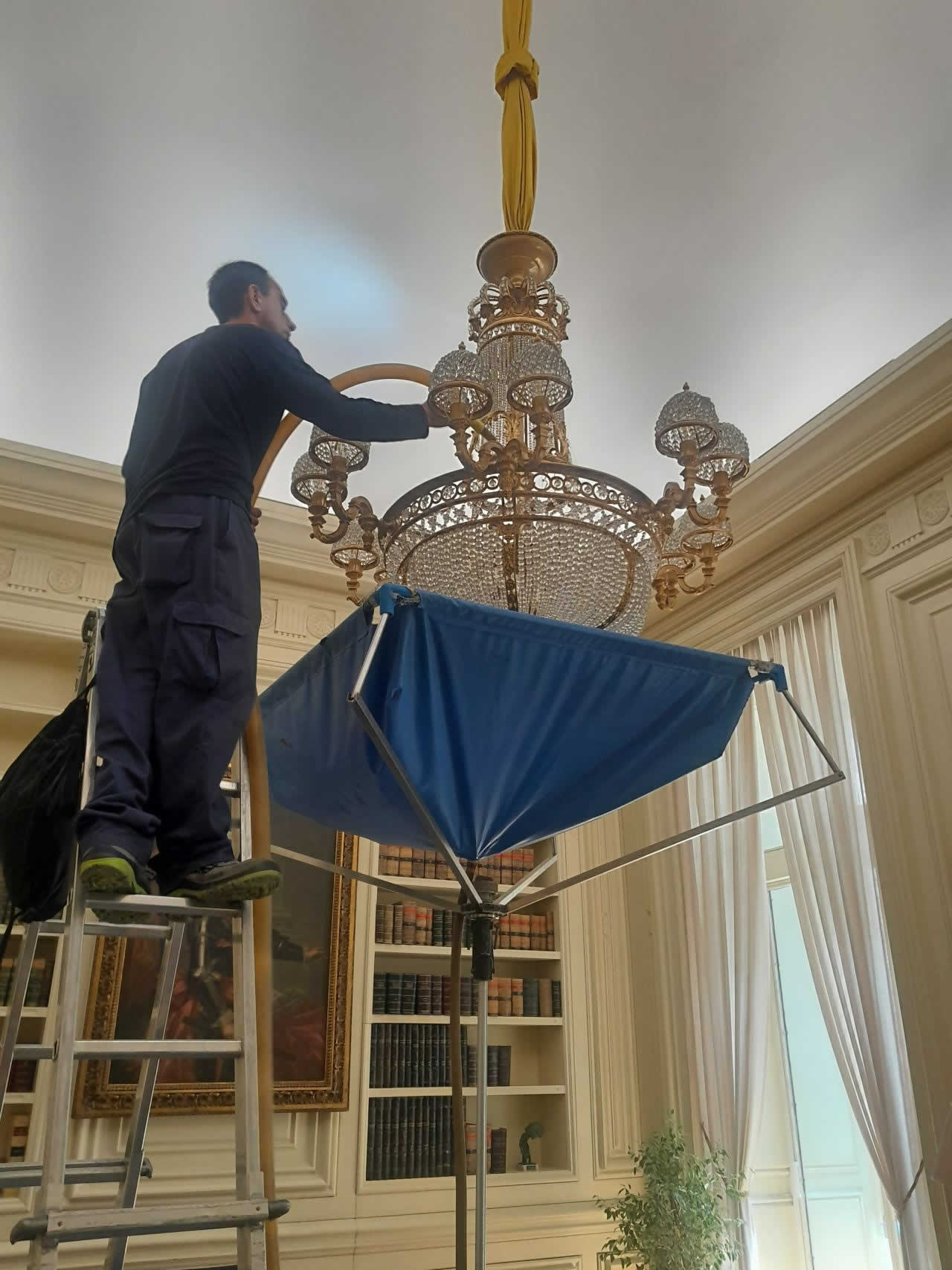 Durante los meses de verano, cuando la actividad oficial se ralentiza, muchos organismos públicos aprovechan para realizar tareas de mantenimiento y conservación de sus lámparas ya que los despachos se quedan vacíos y es el momento perfecto para poder limpiar todas las lámparas de la suciedad acumulada durante todo el año.