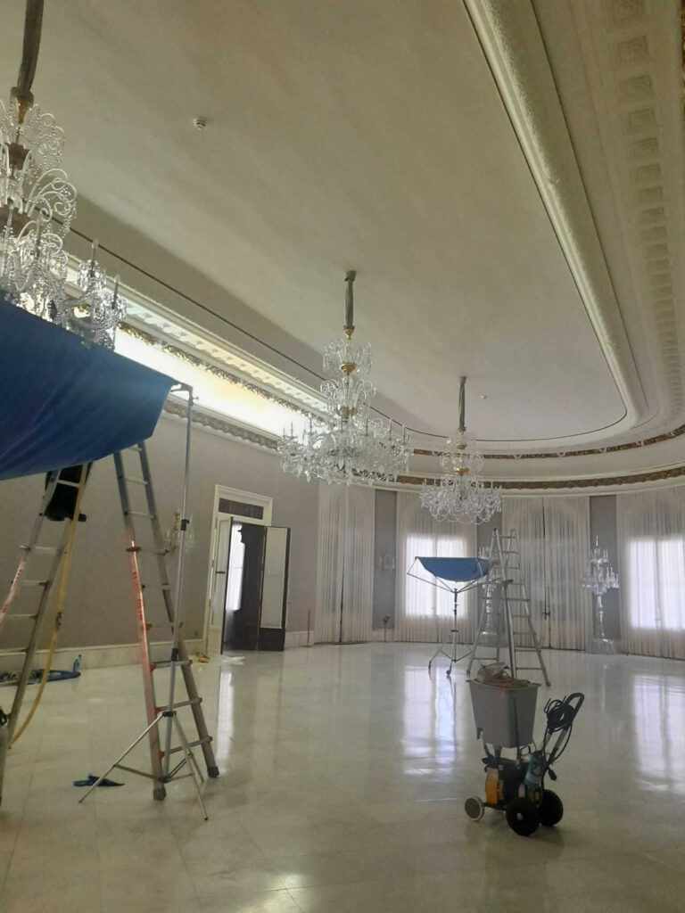 En espacios en uso (recepciones, salones, plateas), se planifica para reducir impacto: protecciones, zonas de paso, horarios valle, etc.